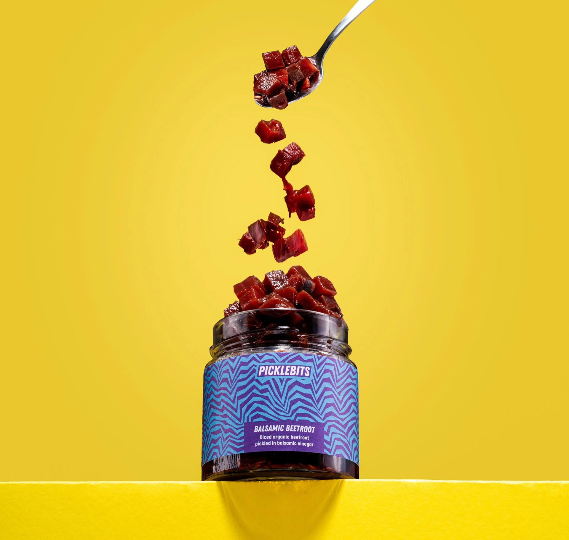 Product and advertising imagery for new food brand, Picklebits - offering exceptional organic pickles.