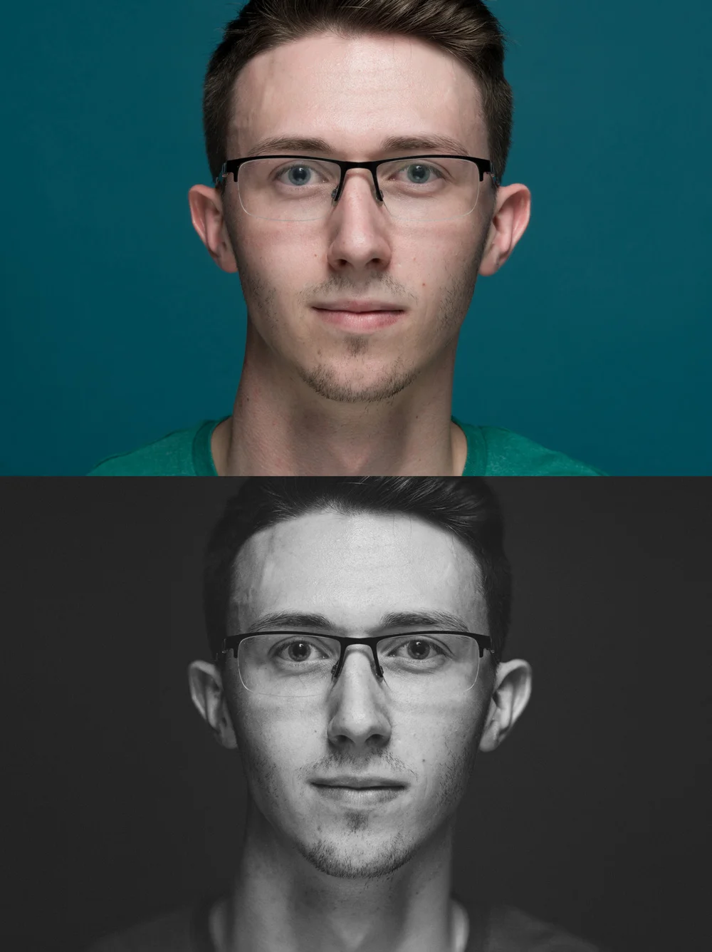 Above. Shooting Scott as part of my recent lighting tutorial workshop. The top image is virtually straight out of lightroom, and the bottom more where I would push as a male portrait.