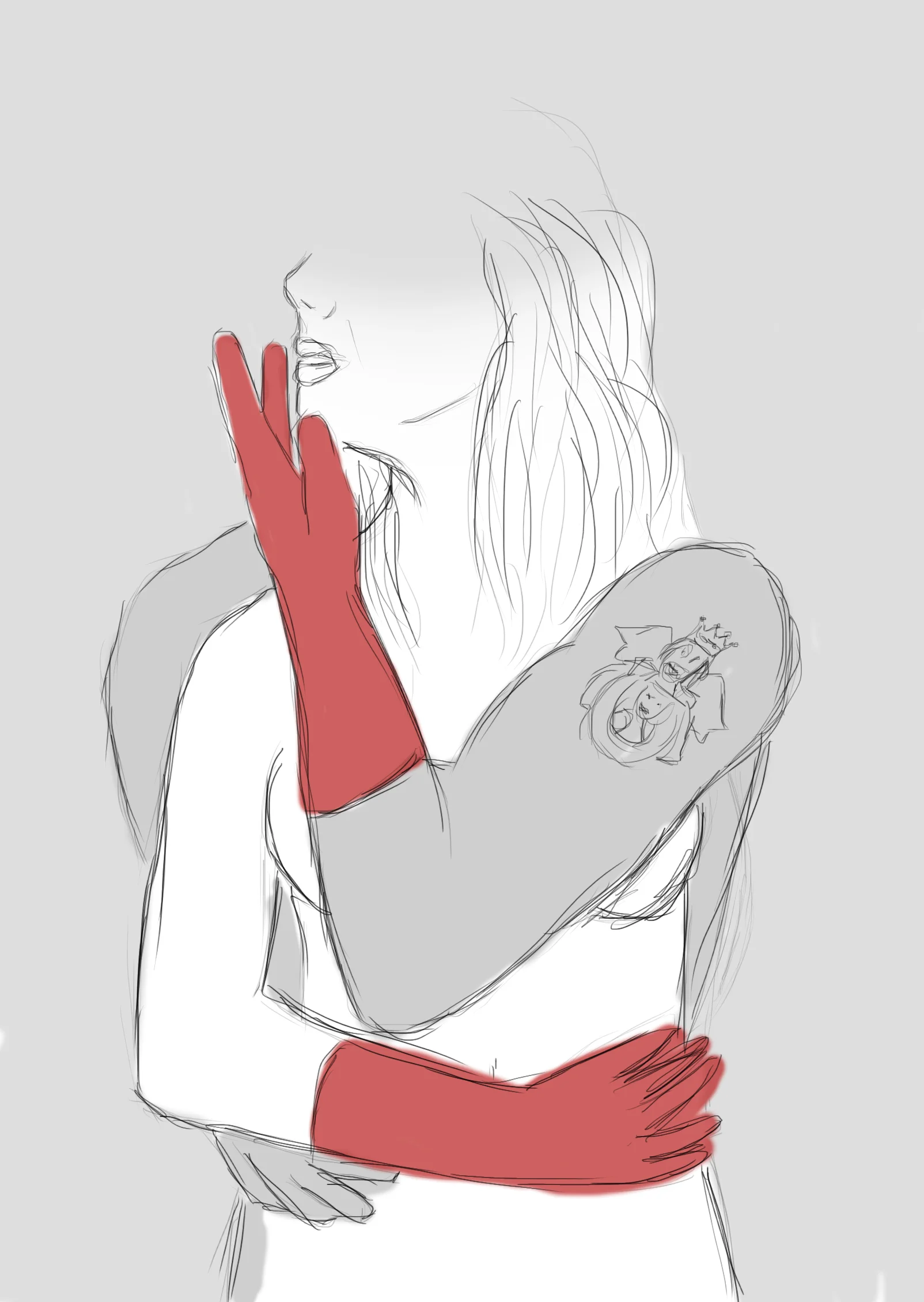 So in some of our initial concepts we did include a glove as you will see in the scamp below. Also, early on it was discussed and agreed that concealed nudity would be a potential avenue to explore, as long as it hit the right mark and wasn't too risque or gratuitous. After all, it did need to be able to go into print in magazines etc.